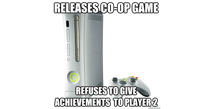 Here at Nerdlyweds, we love to play video games. While we still get to play single-player games sometimes, we mostly play co-op games. Finding good couch co-op games for Xbox 360 is difficult because, in addition to Mrs. Nerdly’s gaming preferences (Nothing “too military” and a playable female character), we’re both achievement-seekers. In light of that, we’d like to bring up something that is just unacceptable: