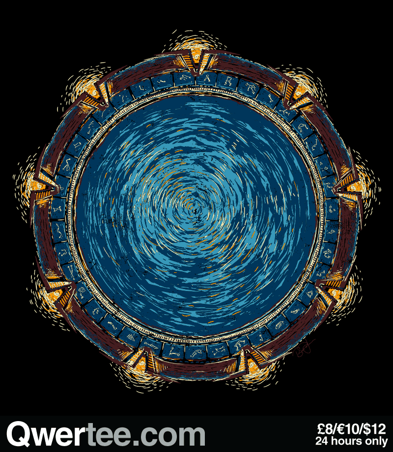 Starry Night references are all the rage these days, so it was only a matter of time before Stargate showed up. You can find this shirt at Qwertee.