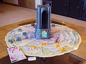 When I was a kid, my parents went to the neighbors’ house to play games. In retrospect, they probably went only once – my parents weren’t big on social outings – but according to my memory, it was a regular thing for a while. They set up this game board and got the pieces out. There were these cards with little pegs and these little plastic buildings. Then there was The Tower. This tall black tower sat at the center of the game board. If that weren’t cool enough, the tower moved and played music! Keep in mind that this was before the release of NES or the Atari 7800 to living rooms around the country. This game was awesome, and I mean that in the truest sense of the word: that we owned a computerized game filled me with awe. I was in love.
