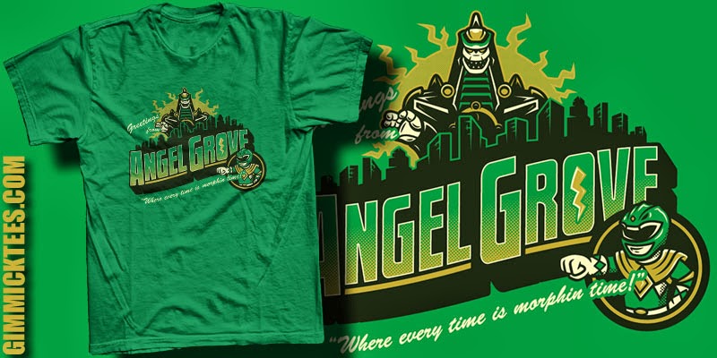 Gimmick Tees covers multiple fandoms with two shirts, one featuring Mighty Morphin Power Rangers and the other featuring The Nightmare Before Christmas.
