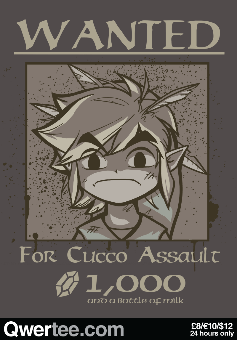 Qwertee has Link looking less than his best. 1,000 Rupees sounds pretty good, but we want the bottle of milk.