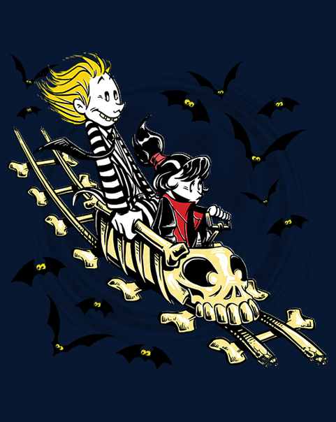Shirt Punch‘s other offerings are varied. First is a presidential shirt featuring our founding fathers as various sci-fi figures. It reminds us a little bit of Bioshock Infinite. Second is a Calvin and Hobbes/Beetlejuice mashup. We love Calvin and Hobbes mashups, and this is no exception.