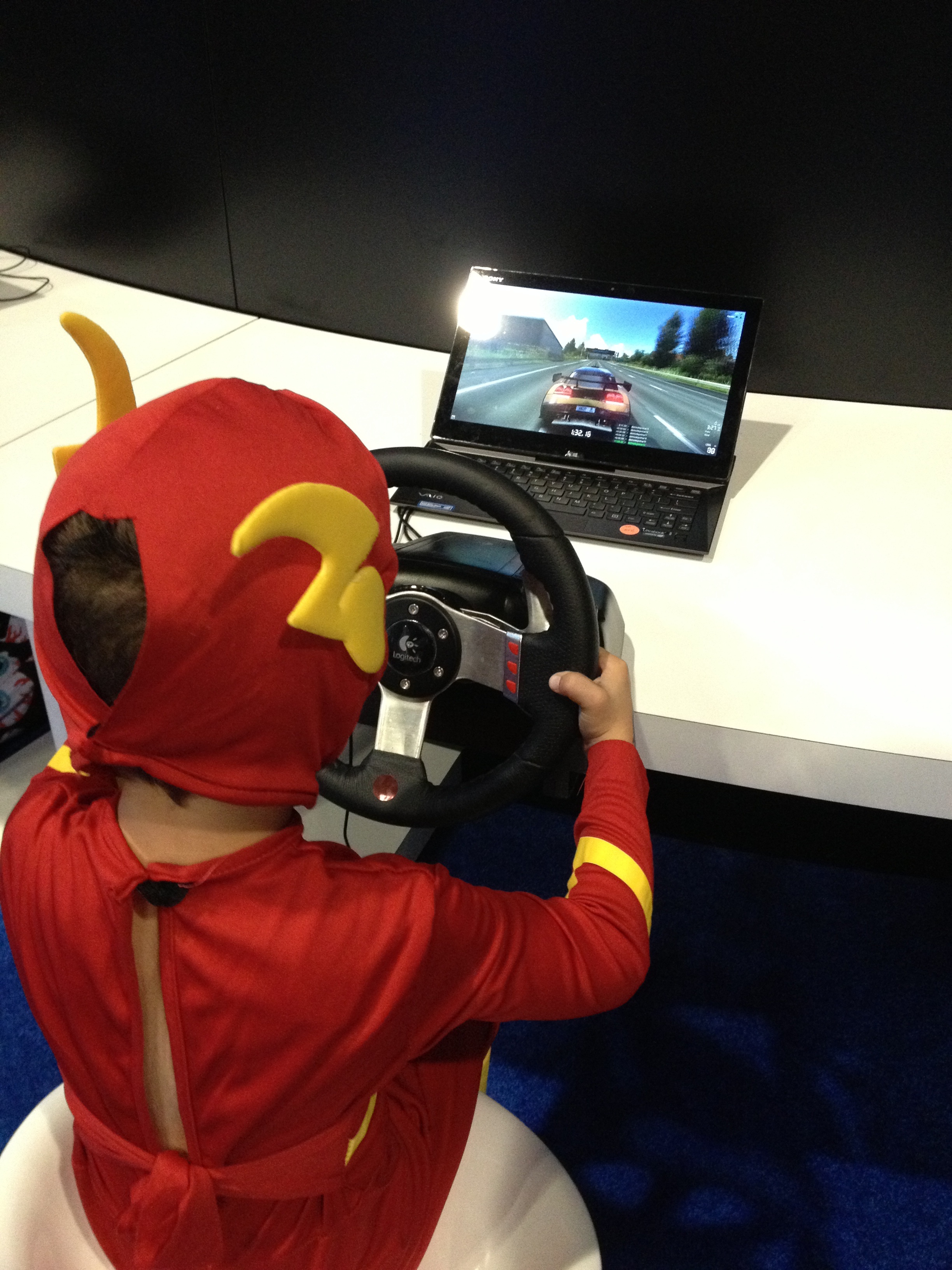 Thankfully, Comic Con is more than just waiting in line to be intimidated by the Ninja Turtles, or waiting in line to hold Max Steel’s sword, or waiting in line to use the bathroom, or waiting in line to get on the escalator (for real). It’s also waiting in line to play video games. When you’re 5 years old, pretty much the only video game you can play – both for height and for content reasons – is the driving game at the Samsung exhibition.