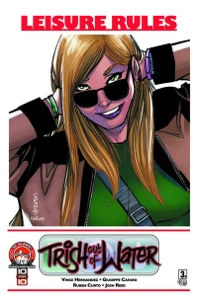 “When her life comes crashing down on her-literally-Trish discovers she is more alone than she ever could have anticipated! After the startling revelation at the conclusion of last issue, Trish must now deal with a devastating tidal wave that threatens to destroy what little remains in her life, as well as an even more shocking discovery that she may indeed be the cause of everything terrible that is happening to her! Aspen’s own Vince Hernandez is joined by the artistic talents of Giuseppe Cafaro and Andrea Dotta to bring to you Aspen’s newest hit series, TRISH OUT OF WATER!”