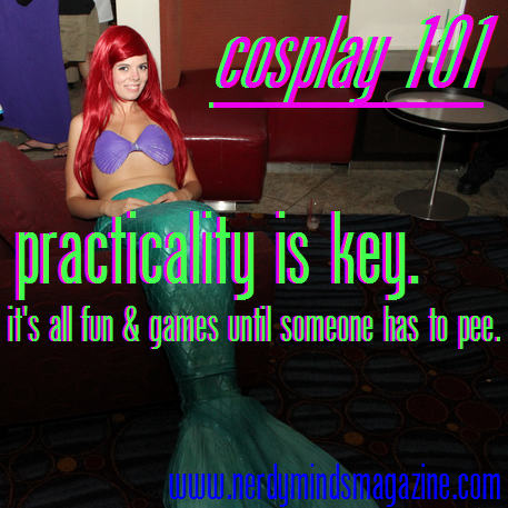 Sometimes at conventions, things go wrong. People can be morons, costumes may rip, armor may fall apart. Keeping a cool head in these types of situations is vital. It’s easy to scream at someone for saying something stupid, to get frustrated when something breaks, etc., but if you remain calm and come prepared, it’ll definitely improve your experience. Bring a quick ‘repair kit’ for some last minute adjustments/to salvage your hard work. These skills are good ones to remember for life, too, because no one in the work world likes a whiny diaper baby.