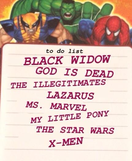 The above description says it all. Another new series about a strong female character that draws extra attention from the fact that the new Ms. Marvel is a Muslim-American teenager. This is one of my favorite covers that I used as my phone wallpaper, hung the promo images and posters on my fridge and various places where you can put things on things.