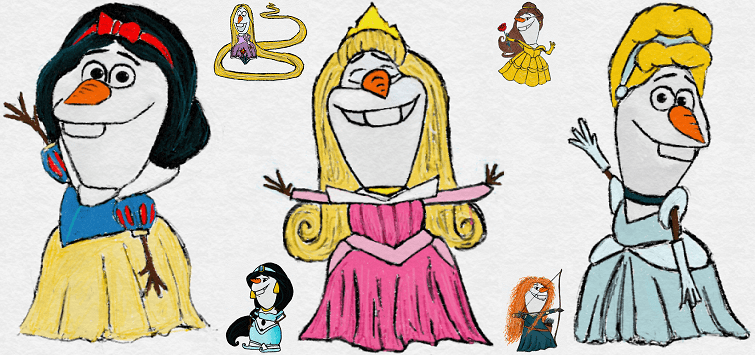 Which Disney princess would you like to see Olaf as? And gosh, can you imagine the songs he might sing?