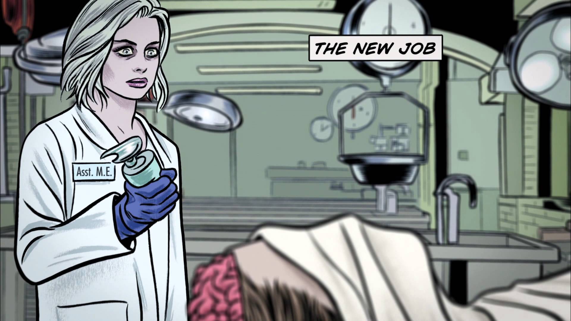 AND WE CAN’T FORGET THOSE OPENING CREDITS / THAT THEME SONG. TV show opening credits and theme songs seem like a thing of the past these days, but iZombie broke the mold/went back in time and gave us one anyway! Done entirely in comic art by the original iZombie comic artist (Michael Allred) and featuring the song “Stop, I’m Already Dead” by Deadboy & The Elephantmen, the intro/theme song is gorgeous, playful and informative, offering a quick retelling of how Liv’s new (un)life came to be – and we’re just plain glad it’s there – so thanks for that, too, Rob Thomas & Company! (See the intro below.)