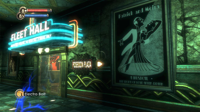 Even this time I was seeing things that I didn’t remember that could have been huge clues as to Atlas’ true colors if I’d had any inkling that the game had such a good move up its sleeve. I’d seen the “Patrick and Moira” musical poster in Fort Frolic and heard the cryptic babblings of the splicers, but this time around I noticed that it even seemed as though Atlas’ accent fluctuated in and out.