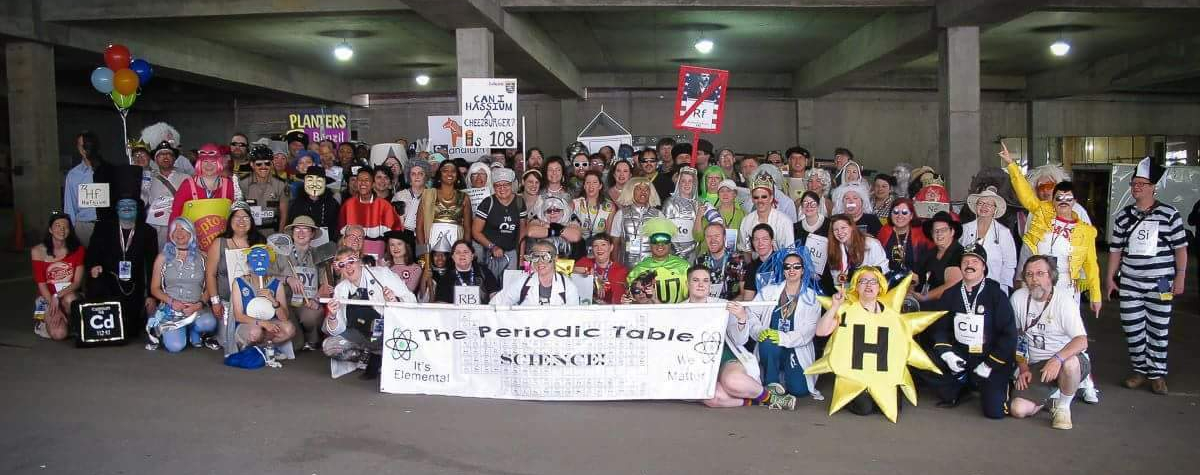 Headed up by Jennie Law and Jason Clay (elements Hydrogen and Copper, respectively), Dragon Con has been the home of the Parade of Elements since 2007, having only some of the Periodic Table’s many elements at It’s beginning. Until this year, when they finally completed it, with every element in attendance flying their geek flag high.
