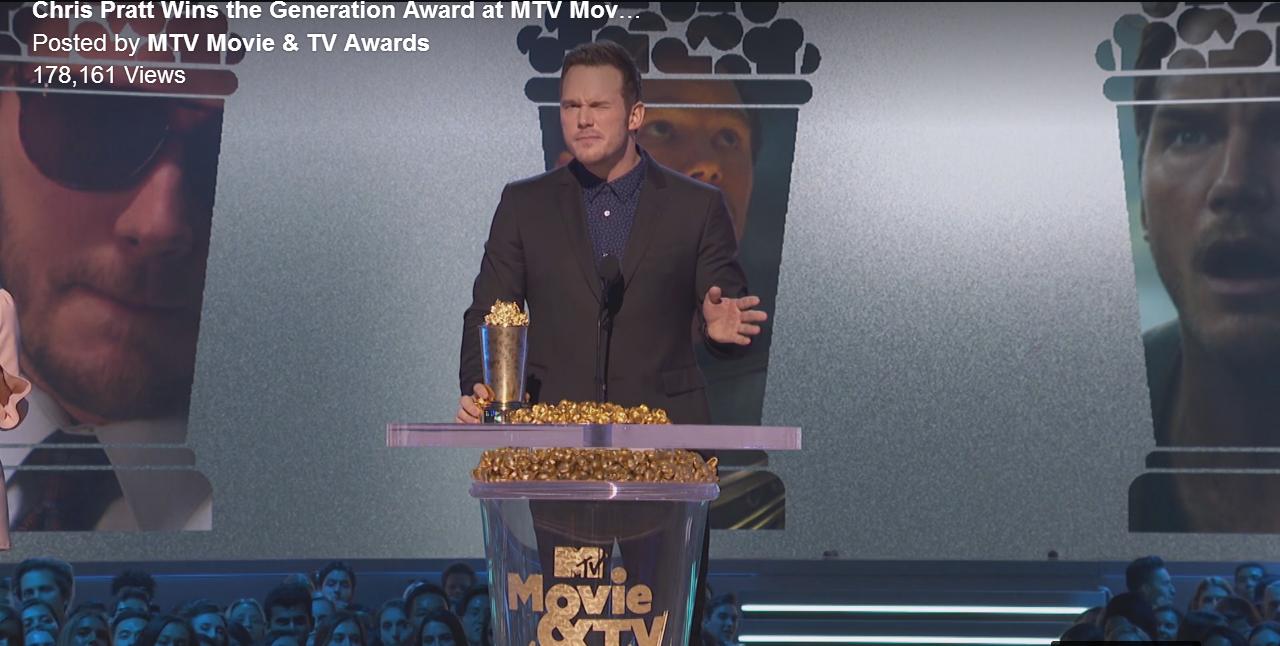 The MTV Movie & TV Awards just happened, and so did something even more important. Actor Chris Pratt (Guardians of the Galaxy, Jurassic World, Parks and Rec) won the Generation Award! After graciously accepting and thanking his parents, siblings, the fans, and shouting out to his son with love, he continued, “This being the Generation Award, I’m going to cut to the chase, and I’m going to speak to you, the next generation…”